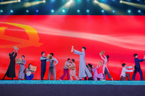 艺术与设计学院带来的舞蹈《新青年》以“报纸”为精神符号,将民主科学的思想浪潮与鲁迅等先贤的呐喊,凝练成极具张力的肢体语言与道具艺术,呈现了一场关于思想启蒙、青春觉醒的视觉风暴。二十二位舞者身着长衫,通过报纸的阅读、传递、藏匿与展开,以每一次撕扯、拼接与重组,象征思想的碰撞与时代的演进,引发观众深刻共鸣。