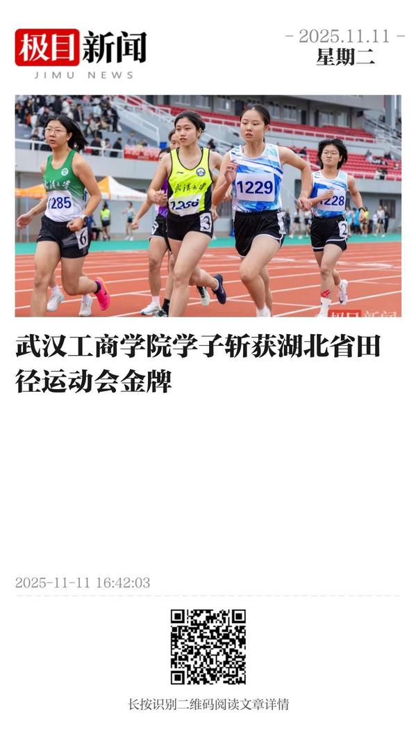 11月9日,为期三天的2025年湖北省普通高等学校田径运动会落下帷幕,武汉工商学院传来喜讯:计算机与自动化学院2023级学生罗艺涵在女子甲组800米比赛中摘得金牌,并在400米比赛中获得第四名。这是该校在本届赛事中取得的最佳成绩。