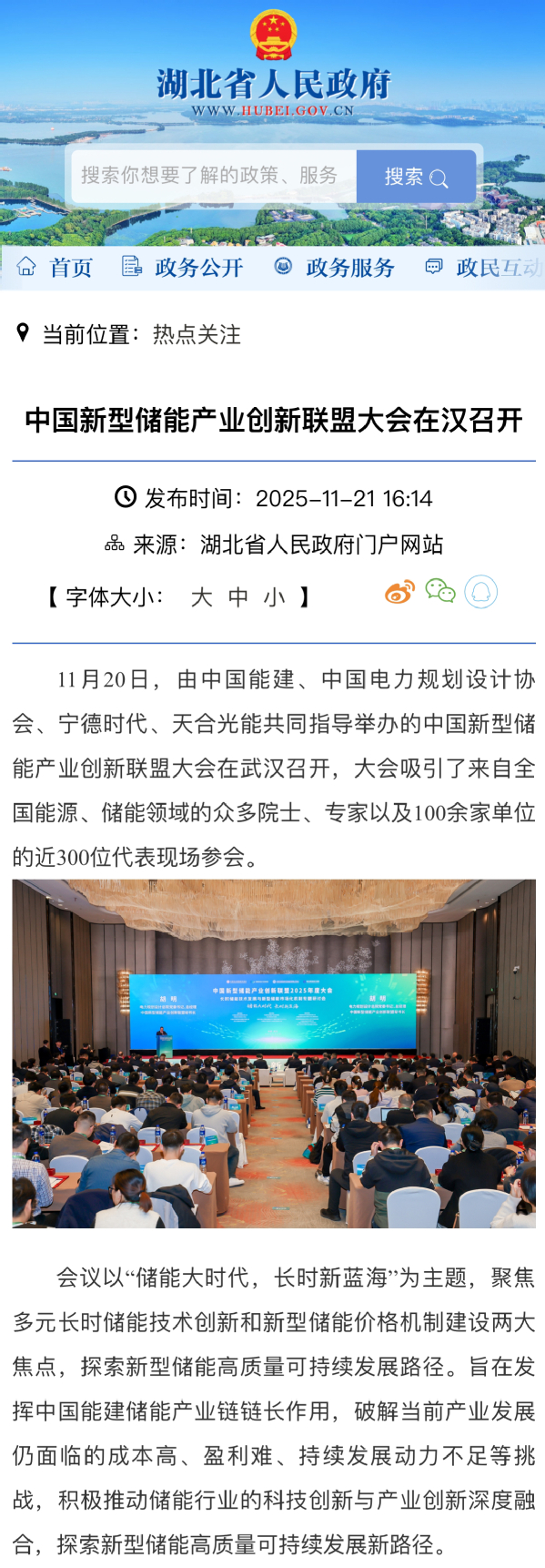 11月20日,由中国能建、中国电力规划设计协会、宁德时代、天合光能共同指导举办的中国新型储能产业创新联盟大会在武汉召开,大会吸引了来自全国能源、储能领域的众多院士、专家以及100余家单位的近300位代表现场参会。