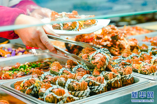 图为武汉工商学院师生食堂售卖的螃蟹。刘皓辰摄 新华网发