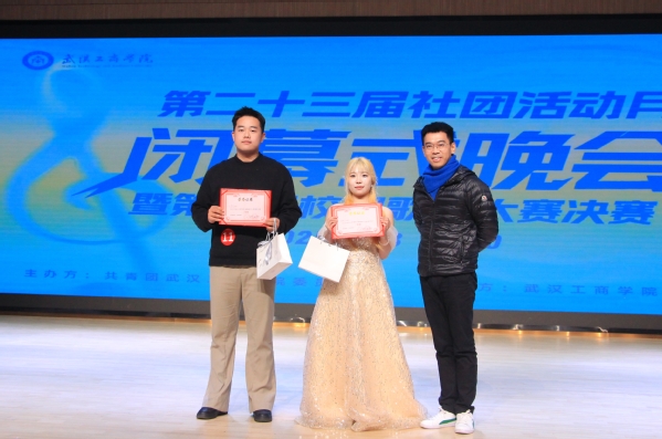新闻中心讯(记者 齐佳玥 谢思珏 罗陈佩)12月3日19:00,武汉工商学院玉振楼0501报告厅内星光璀璨、掌声雷动,第二十三届社团活动月闭幕式晚会暨第六届校园歌手大赛在此火热上演。武汉音乐学院副教授吴霜、教师王子鸣,湖北美术学院教师罗璇,武汉大学附属小学教师王凯迪,武汉城市学院团委办公室主任卢诗琪,武汉工商学院团委副书记叶之培、专职团干李璐瑶以及校内百余名学生共同参加本次活动,感受这场精彩的青春盛宴。