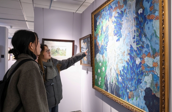 武汉工商学院18件师生作品凭借鲜明主题与精湛技法受关注。教师纪秋娟的水墨作品《灵息共栖》以细腻笔触勾勒生灵与山水共生之景,深刻诠释生态理念,获现场嘉宾盛赞并被企业家当场收藏。参展作品中,神农架的林海、长江的浩渺、洪湖的湿地等湖北自然元素被创作者以多样艺术语言呈现,兼具视觉冲击力与思想感染力,吸引观众驻足品鉴交流。(许依平 蓝静)