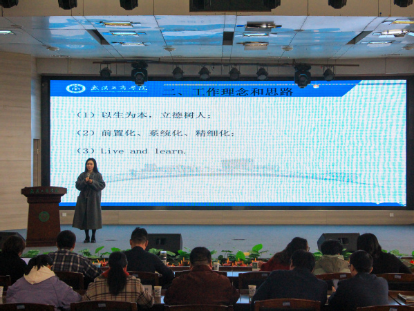 陈义文作总结讲话。他强调,学工队伍必须坚持严谨细致的工作作风,严抓学生行为管理,切实维护校风学风,他指出,全体教师应协同配合、强化育人合力,共同守好师德师风底线。同时,他提倡教师注重提升表达能力,在工作展示中突出演讲的感染力与逻辑性,善用案例与情感共鸣呈现育人成效,并鼓励教师积极参与各类交流展示平台,实现从“埋头做事”到“善于表达”的全面提升。