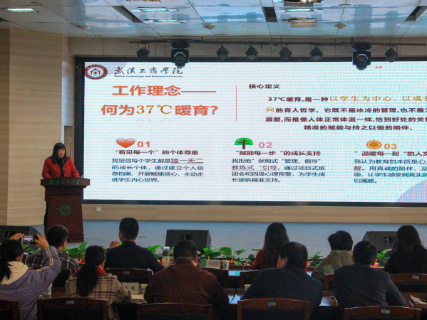 田飞燕老师展示了“37度暖育”育人模式,以“适宜温度”比喻育人工作的温度,依托项目式班团会、闭环谈心谈话、四级心理防御体系等举措,着力实现因材施教与精准赋能。