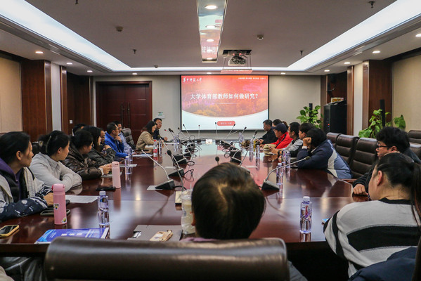 新闻中心讯(特约记者 郭少颖)为深入贯彻落实《武汉工商学院关于科学研究促进教学的指导意见(2025年)》精神,切实提升体育教师科研素养与教学融合能力,12月18日14:40,公共课部在弘德楼1220会议室举办专题讲座,特邀华中师范大学王斌教授担任主讲嘉宾,公共课部全体体育教师参加了此次学习交流活动。