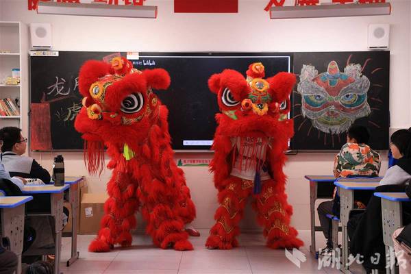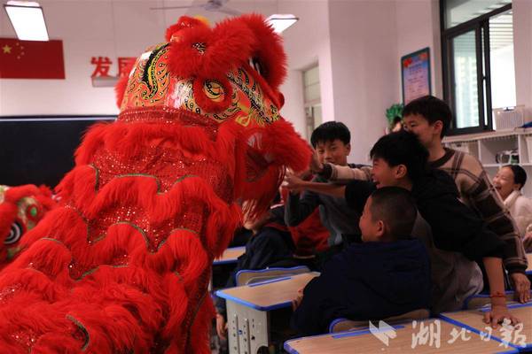 湖北日报讯(记者韩晓玲、通讯员陈雯茜、王可睿)12月19日下午,武汉市洪山区第十小学六年级6班教室里,两只“醒狮”踏着欢快的鼓点跃入小学生中间,时而威风凛凛,时而憨态可掬,逗得孩子们欢呼雀跃。这是武汉工商学院公共课部为小学生组织开展的传统文化体验课。
