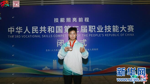 图为武汉工商学院学生徐洪力摘得第三届全国职业技能大赛物流与货运代理项目铜牌