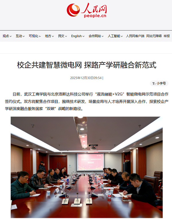 日前,武汉工商学院与北京洛斯达科技公司举行“液流储能+V2G”智能微电网示范项目合作签约仪式。双方将聚焦合作项目,围绕技术研发、场景应用与人才培养开展深入合作,探索校企产学研深度融合服务国家“双碳”战略的新路径。