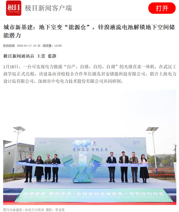 据了解,该系统集成了光伏发电、储能调节与柔性互联三大核心功能,通过直流柔性协同调度技术,实现了清洁能源的高效利用与负荷的灵活响应。作为核心储能单元,君安锌溴液流电池为该集成系统提供了安全保障和长效动能支撑。该电池技术由武汉工商学院与湖北君安储能科技有限公司共同研发,具备本质安全、循环寿命长等特点,使建筑地下室、停车库等空间也能成为安全可靠的“能源仓库”。