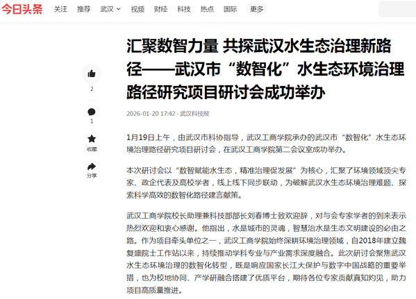 1月19日上午,由武汉市科协指导,武汉工商学院承办的武汉市“数智化”水生态环境治理路径研究项目研讨会,在武汉工商学院第二会议室成功举办。