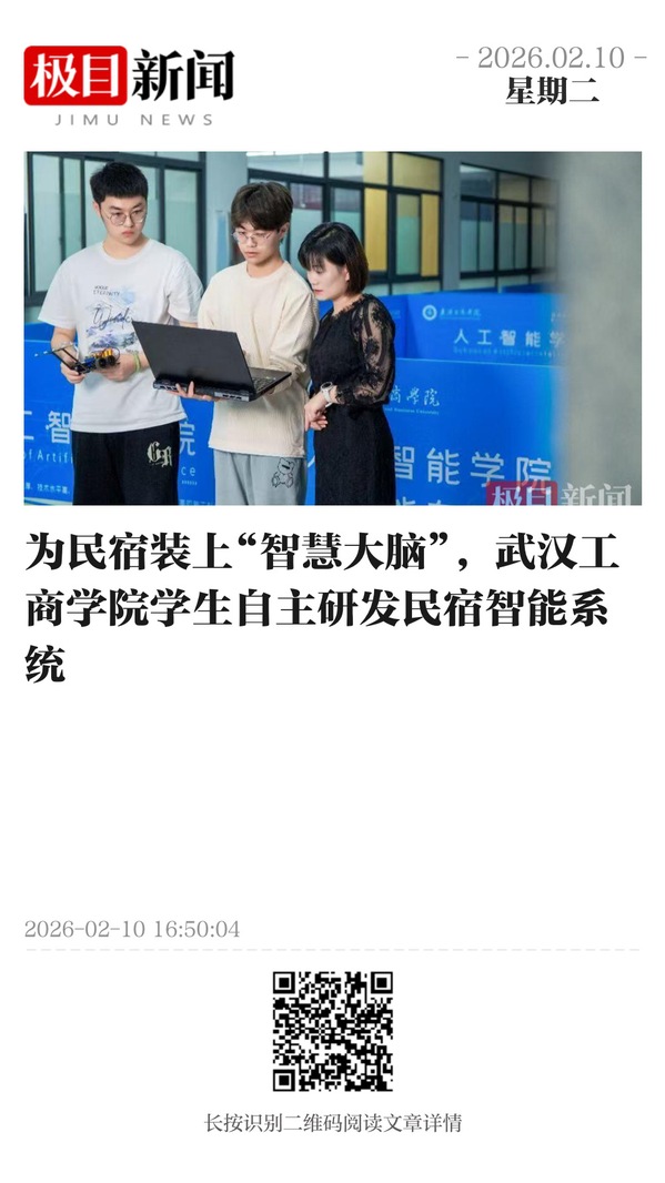 语音指令控制全屋设备、人来自动亮灯、离屋一键布防……2月6日下午,在湖北宜昌一家民宿内,武汉工商学院电子信息工程专业大二学生赵双明正对其自主研发的民宿智能系统进行最后调试。该系统将于近期正式投用,全面支持语音、远程与自动化管理,为民宿运营装上“智慧大脑”。“推动我不断向前的,是对技术的纯粹热爱,以及成为一名嵌入式工程师的清晰目标。”他说。