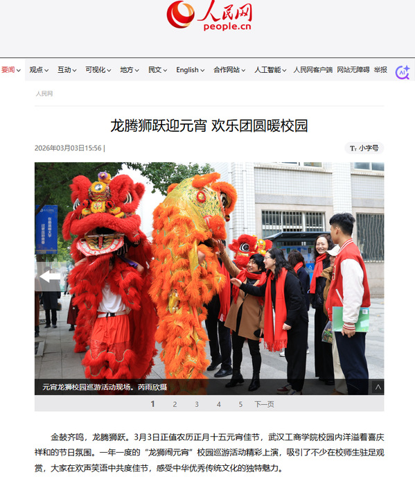金鼓齐鸣,龙腾狮跃。3月3日正值农历正月十五元宵佳节,武汉工商学院校园内洋溢着喜庆祥和的节日氛围。一年一度的“龙狮闹元宵”校园巡游活动精彩上演,吸引了不少在校师生驻足观赏,大家在欢声笑语中共度佳节,感受中华优秀传统文化的独特魅力。