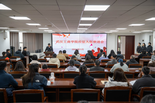 新闻中心讯(通讯员 朱慧灵)为热烈欢送优秀学子光荣应征入伍,激发广大青年爱国拥军、投身国防的热情,3月6日上午,武汉工商学院2026年春季应征入伍新兵欢送会在弘德楼10楼会议室举行。校党委副书记幸福堂,学生工作部部长陈义文,各学院师生代表、入伍新兵及家长代表、退役大学生士兵代表齐聚一堂,共同为11名即将踏上军旅征程的准新兵送行,见证青春与使命的光荣交接。