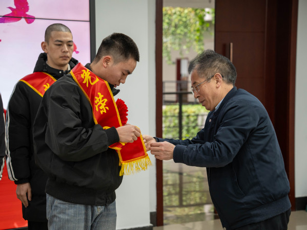 随后,幸福堂为11名准新兵逐一颁发入伍纪念礼品。一份份承载着母校关怀与期盼的纪念品,既是对学子参军报国的高度认可,也饱含着学校对大家军旅生涯的美好祝福。幸福堂与准新兵亲切交流,叮嘱大家牢记母校嘱托、坚守报国初心,在军营严守纪律、苦练本领,努力成为有灵魂、有本事、有血性、有品德的新时代革命军人,为母校争光、为家乡添彩、为国防和军队现代化建设贡献青春力量。