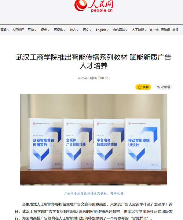 随着人工智能深度渗透,广告行业的业务形态与运作模式正经历颠覆性变革。行业对人才的需求,已从单纯的创意执行,转向对智能化工具、精准营销逻辑的综合把握。武汉工商学院广告学专业正是遵循“专业+人工智能”的建设思路来谋划智能传播系列教材的编纂工作,将前沿技术转化为优质的教学资源。