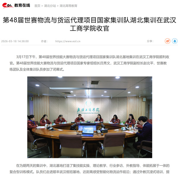 武汉工商学院自2018年获批第45届世赛货运代理项目中国集训基地以来,持续深耕物流与货运代理行业技能人才培养。赵北平在闭幕式上表示,本次集训既是技能提升的实战课堂,也是能力淬炼的宝贵契机,期待队员们在世赛舞台上展现中国技能人才的硬核实力。