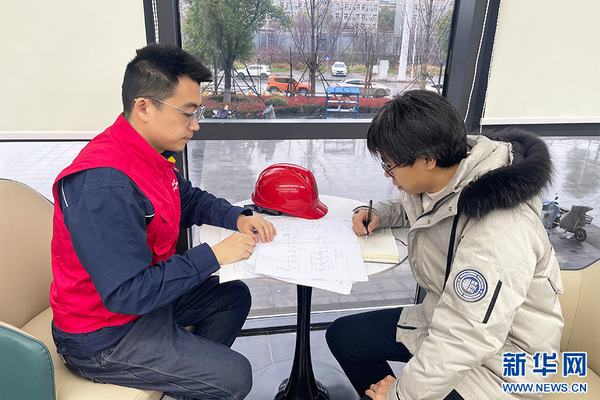 图为“鄂电红马甲”共产党员服务队队员走进武汉工商学院能源电气工程学院,为校企合作项目提供技术指导。新华网发