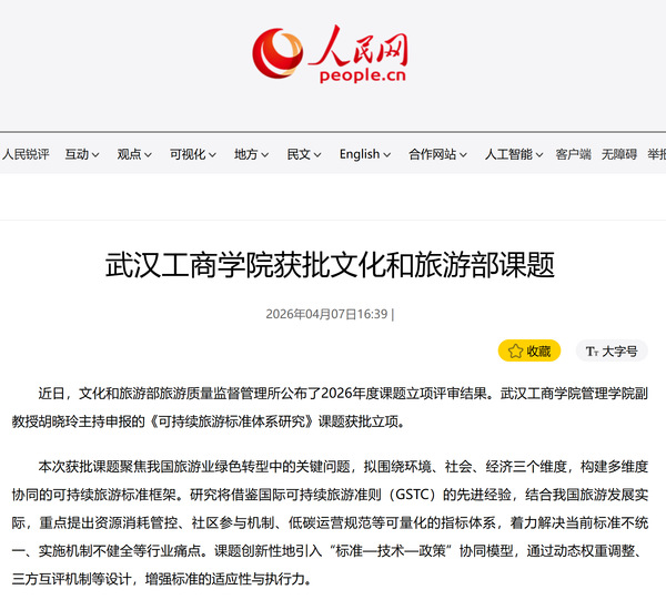 人民网:武汉工商学院获批文化和旅游部课题